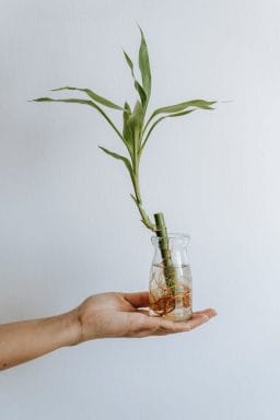 You may have seen people growing lucky bamboo in water with stones or gravel, and wondered whether you can do the same with your new lucky bamboo cuttings. Once those cuttings are rooted, you can indeed “plant” them in water as they are notoriously hardy plants that don’t need too many nutrients to thrive.
